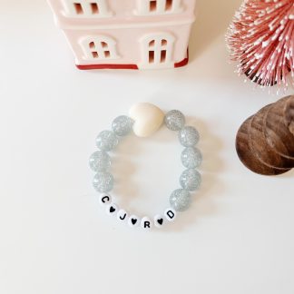 Bracelet « Noël » (Paillette Argentée & Coeur Crème)