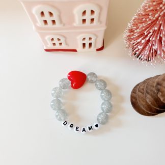 Bracelet « Noël » (Paillette Argentée & Coeur Rouge)