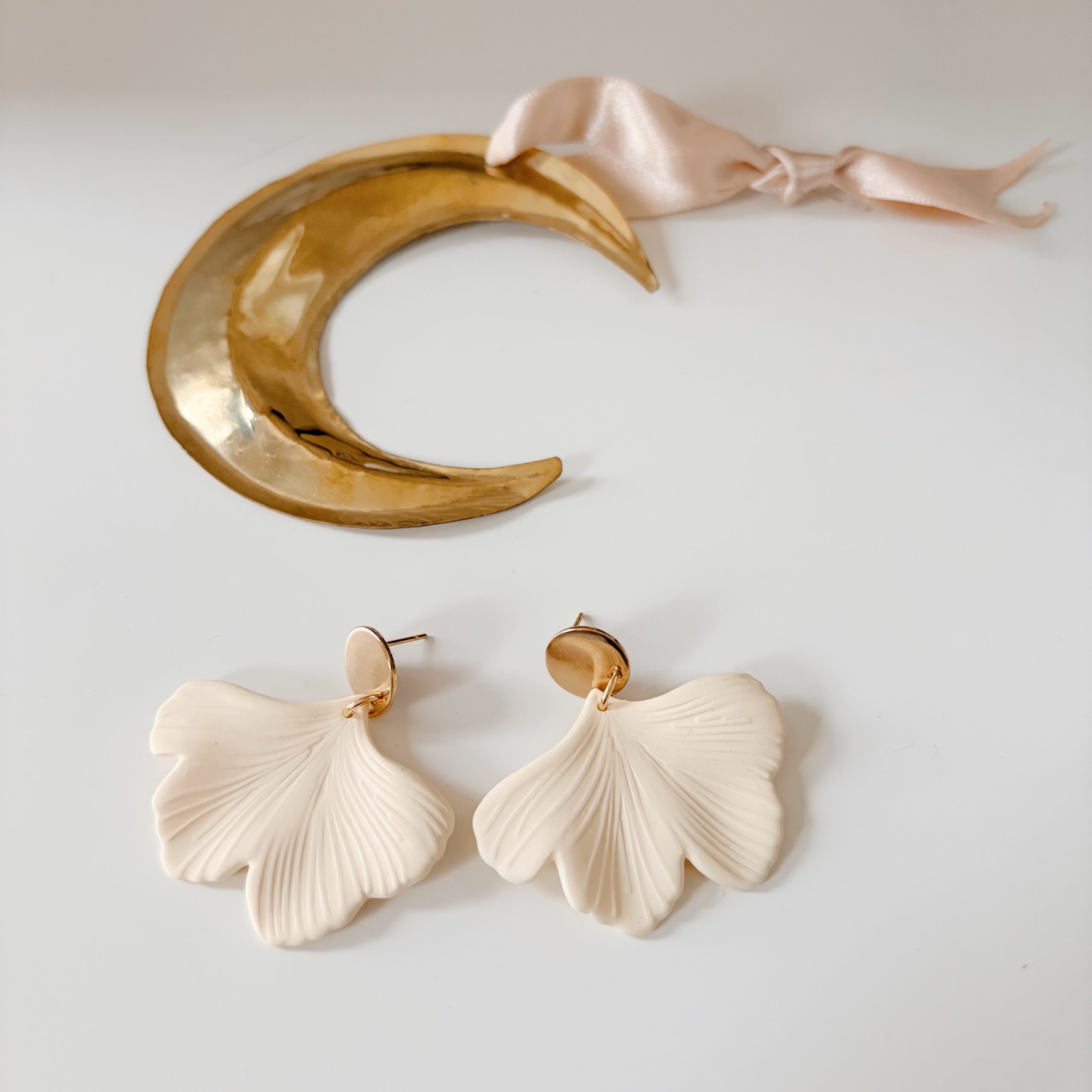 Boucles d’Oreilles « Ginkgo » (Crème)