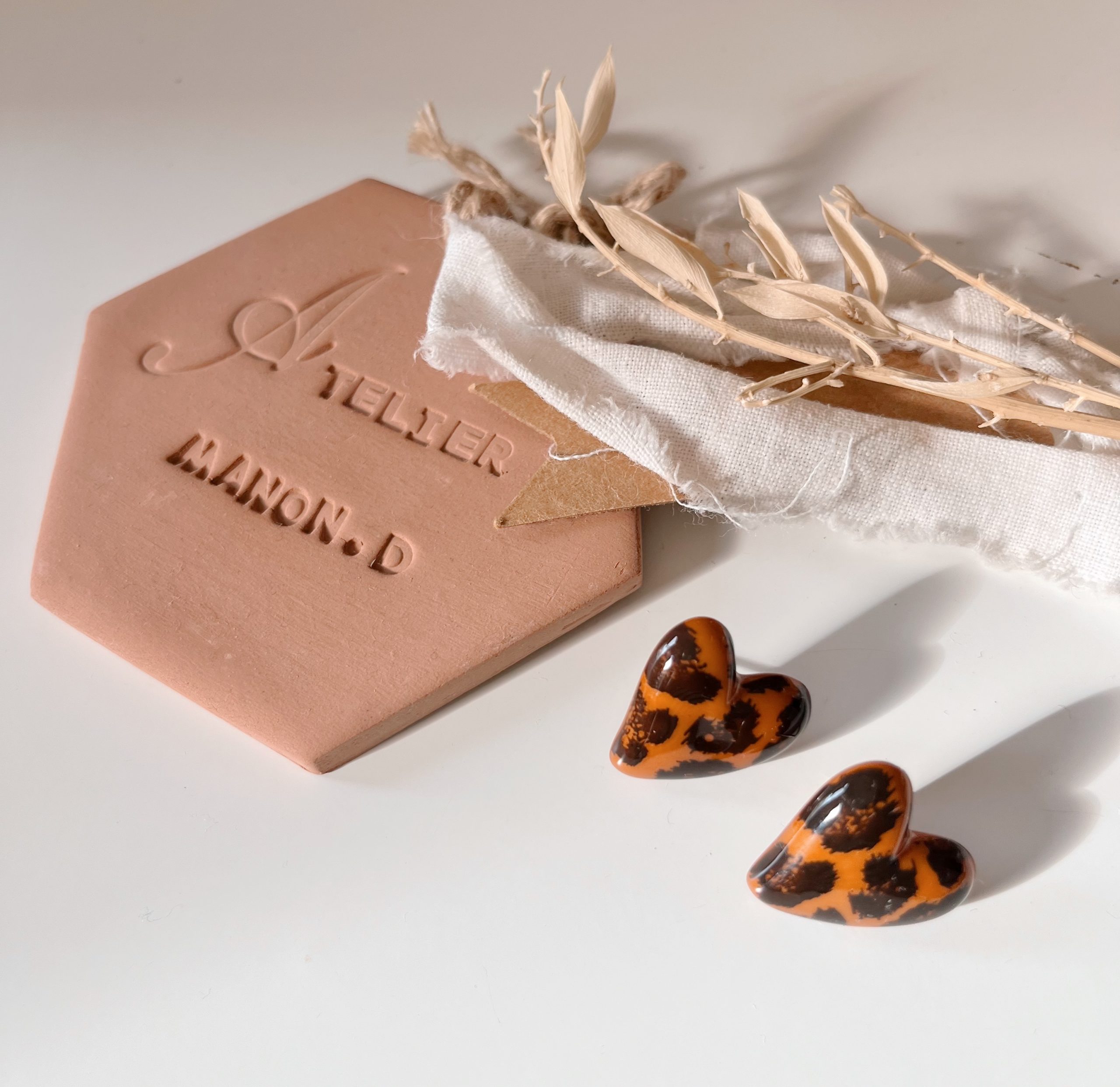 Boucles d’Oreilles « Petit Coeur »(Léopard)